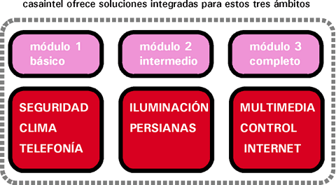 El sistema de módulos de casaintel, permite implantar desde el escritorio virtual del usuario, las más avanzadas prestaciones en la vivienda a partir de la instalación básica recomendada por casaintel.